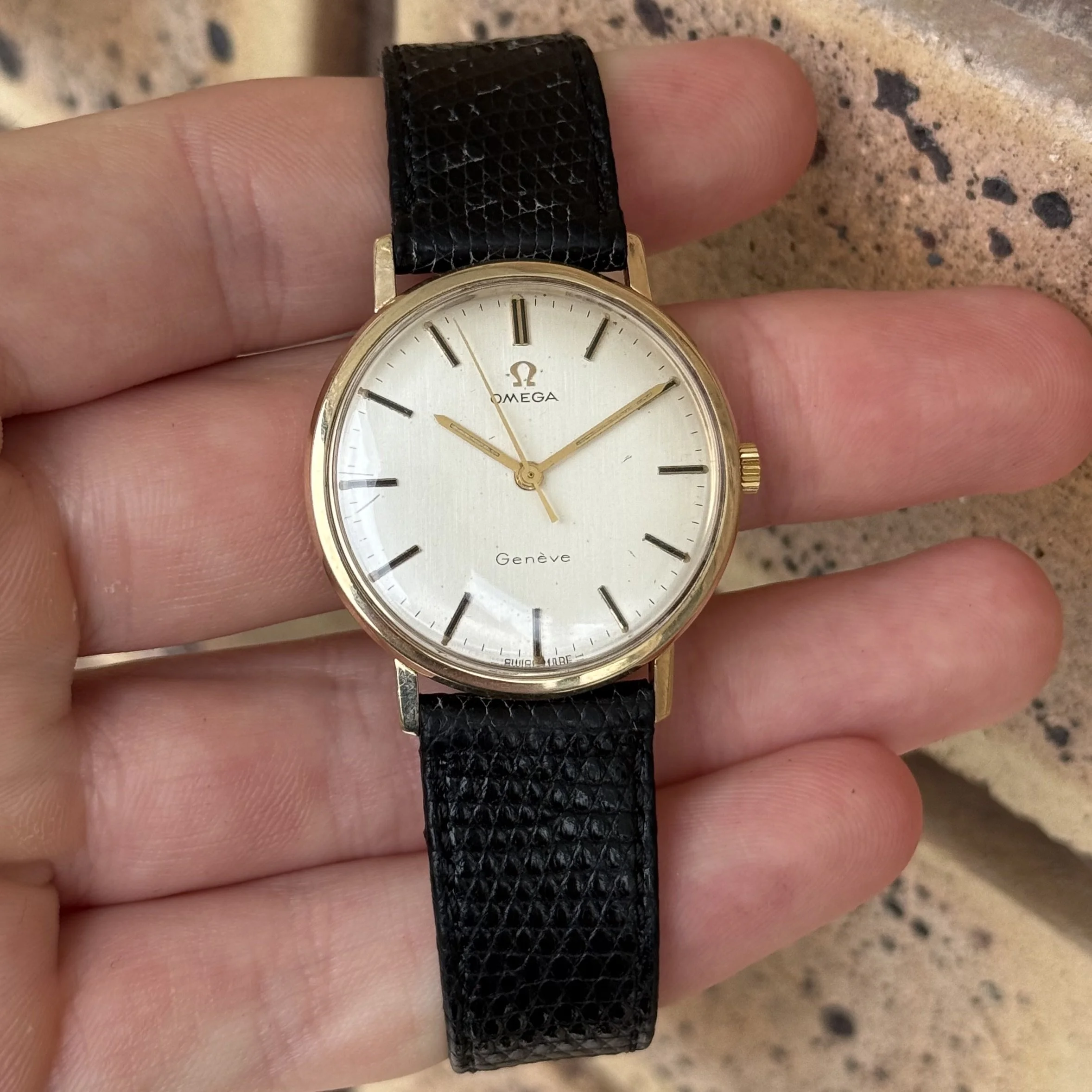 • Dial: Original silver sunburst dial with applied gold indices and Omega logo